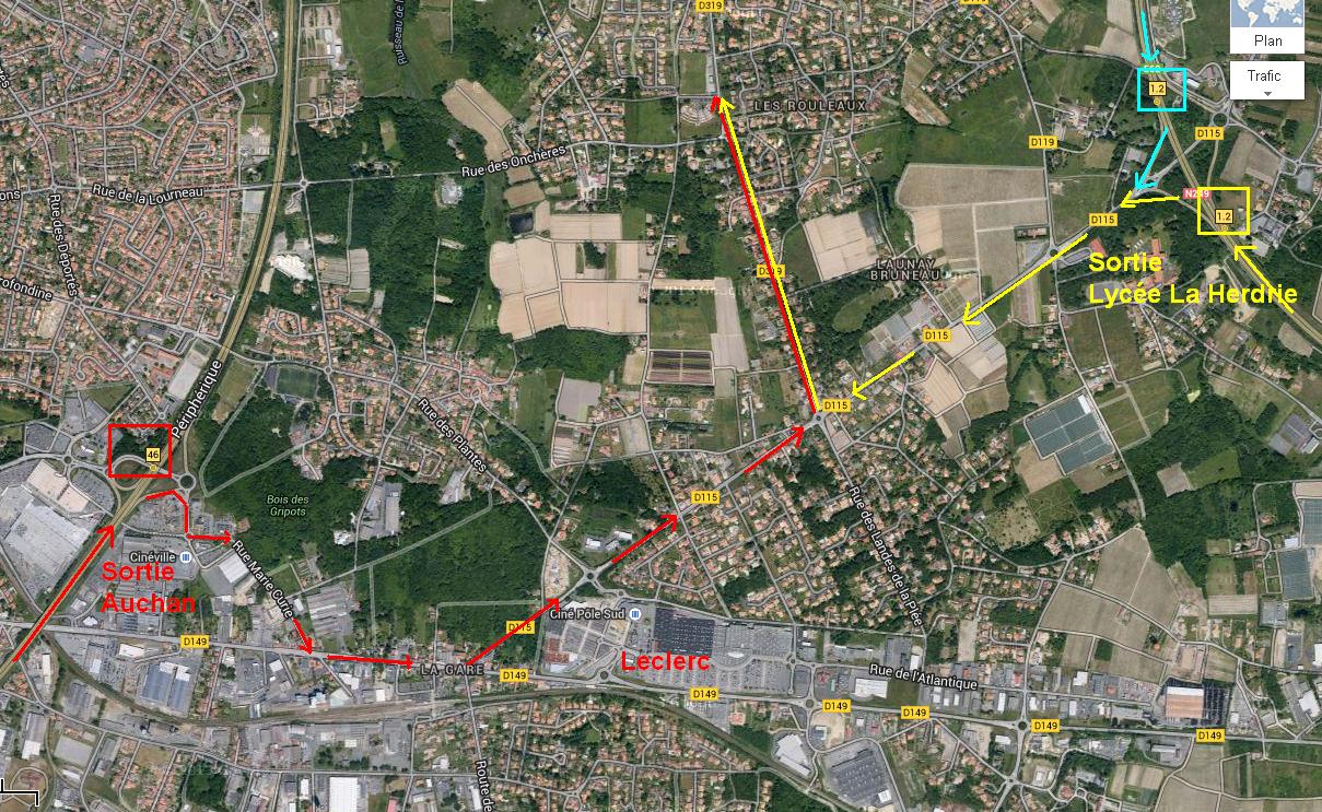 En provenance du périphérique “Nord” (trajet bleu) (pont de Bellevue):